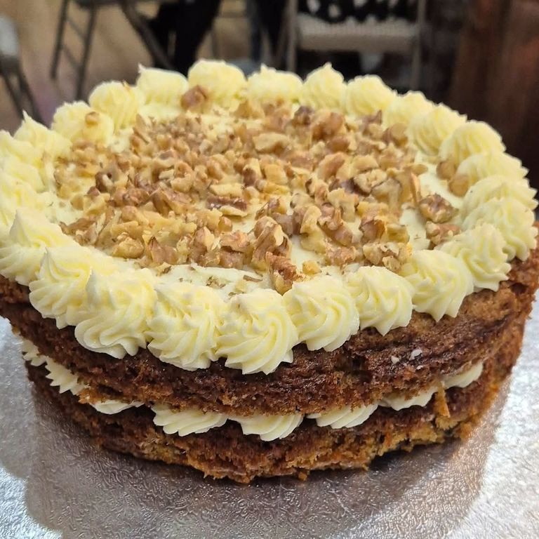 Deliciously moist carrot cake, packed with crunchy walnuts and warm spices. Perfect for sharing, serves 8–10 slices.