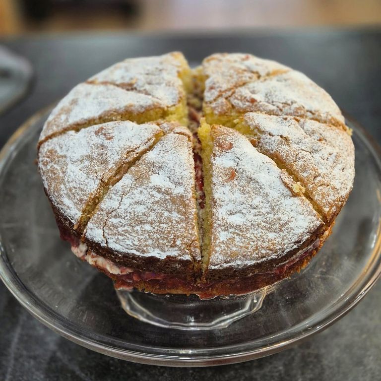 A deliciously light Victoria sponge with sweet jam and cream, amazingly tasty and perfect for 8-12 slices.